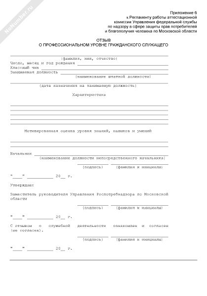 - 28Отзыв о профессиональном уровне гражданского служащего Управления Роспотребнадзора по Московской области