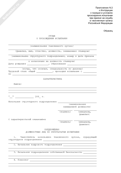 - 32Отзыв о прохождении испытания гражданина при приеме на службу в таможенные органы Российской Федерации