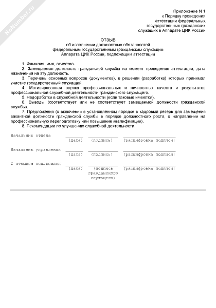 - 35Отзыв об исполнении должностных обязанностей федеральным государственным гражданским служащим Аппарата Центральной избирательной комиссии России, подлежащим аттестации