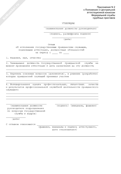 - 37Отзыв об исполнении государственным гражданским служащим Федеральной службы судебных приставов, подлежащем аттестации, должностных обязанностей
