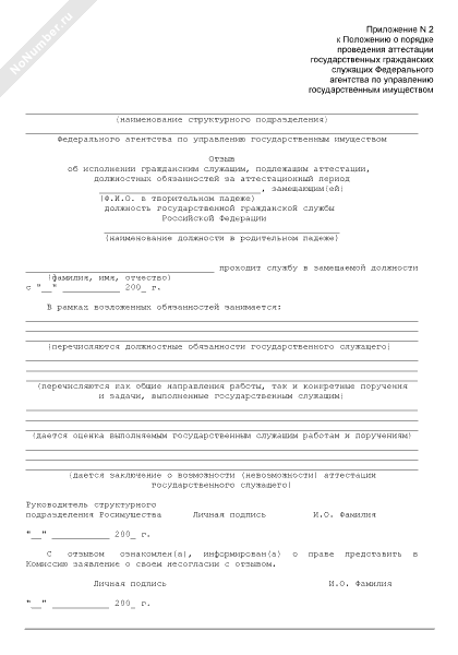 - 39Отзыв об исполнении гражданским служащим Федерального агентства по управлению государственным имуществом, подлежащим аттестации, должностных обязанностей за аттестационный период, замещающим(ей) должность государственной гражданской службы Российской Федерации