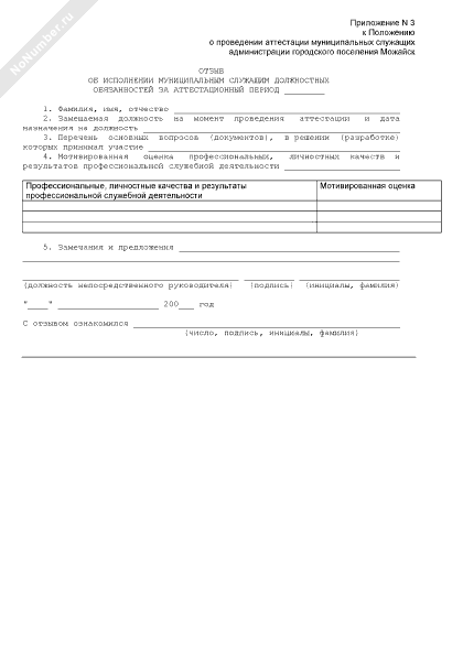 - 38Отзыв об исполнении муниципальным служащим администрации городского поселения Можайск Московской области должностных обязанностей за аттестационный период