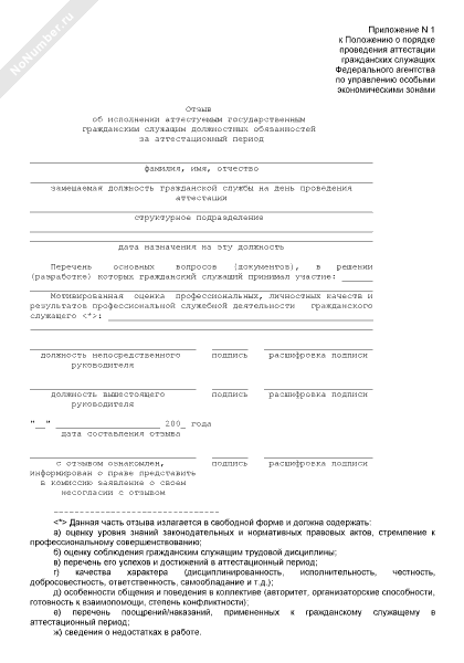 - 69Отзыв об исполнении аттестуемым государственным гражданским служащим Федерального агентства по управлению особыми экономическими зонами должностных обязанностей за аттестационный период