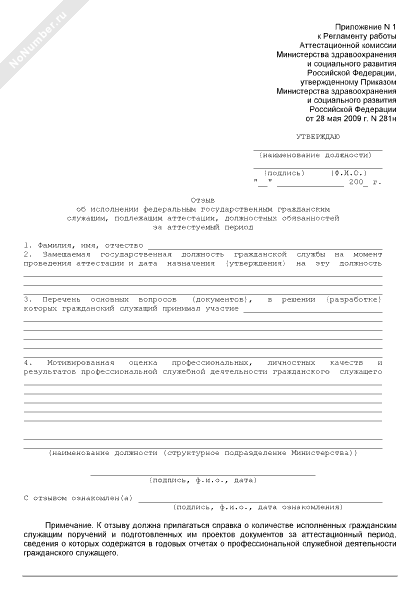 - 61Отзыв об исполнении подлежащим аттестации федеральным государственным гражданским служащим должностных обязанностей за аттестационный период