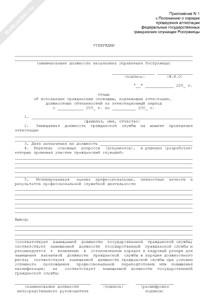 - 62Отзыв об исполнении гражданским служащим Федерального агентства по обустройству государственной границы Российской Федерации, подлежащим аттестации, должностных обязанностей за аттестационный период