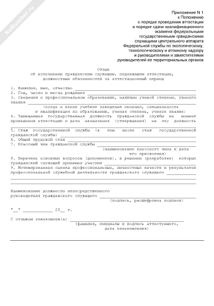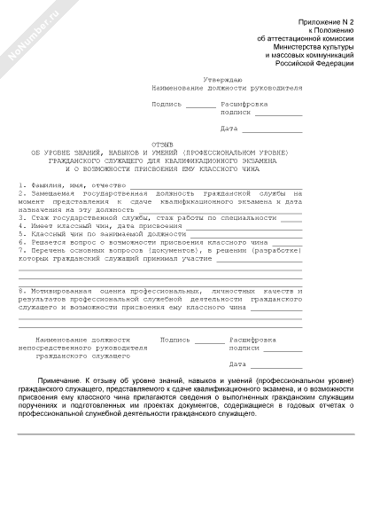 - 80Отзыв об уровне знаний, навыков и умений (профессиональном уровне) гражданского служащего Министерства природных ресурсов Российской Федерации, представляемого к сдаче квалификационного экзамена, и о возможности присвоения ему классного чина