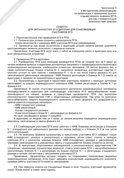 Памятка для организатора в аудитории для слабовидящих участников единого государственного экзамена (рекомендуемый образец заполнения)