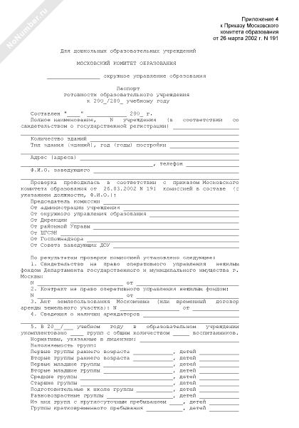 - 86Паспорт готовности образовательного учреждения к учебному году (для дошкольных образовательных учреждений)