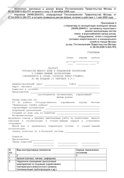 - 82Паспорт готовности жилого дома к эксплуатации в осенне-зимних условиях