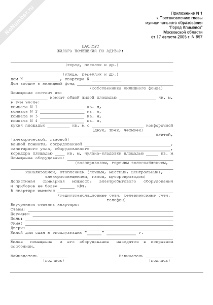 - 99Паспорт жилого помещения (приложение к договору социального найма жилого помещения на территории Лотошинского района Московской области)