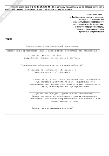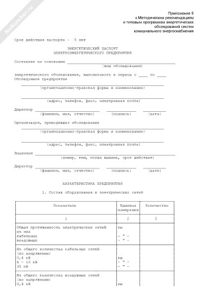 Энергетический паспорт потребителя топливно-энергетических ресурсов