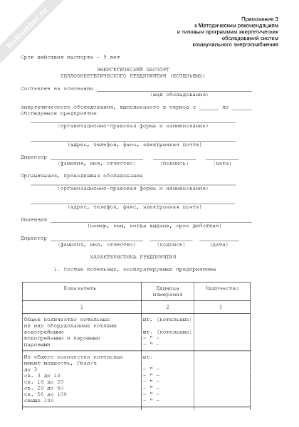Энергетический паспорт теплоэнергетического предприятия (котельных)