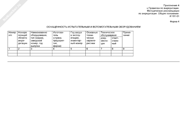 Паспорт аккредитованной испытательной лаборатории (центра) Госсанэпиднадзора. Оснащенность испытательным и вспомогательным оборудованием (форма № 4)
