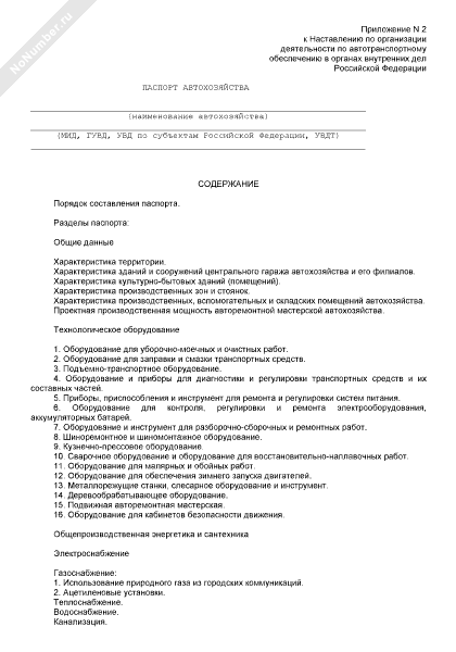 Паспорт автохозяйства-автотранспортного подразделения органов внутренних дел (рекомендуемый образец заполнения)