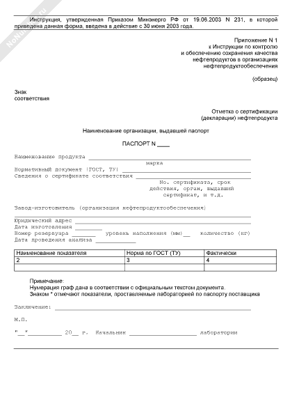 Паспорт качества нефтепродуктов