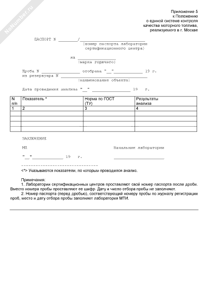 Паспорт качества нефтепродукта (рекомендуемый образец заполнения)