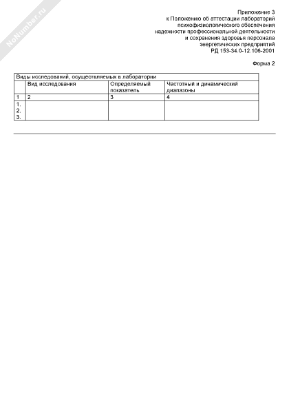 Паспорт лаборатории психофизиологического обеспечения профессиональной деятельности персонала энергетических предприятий. Виды исследований, осуществляемых в лаборатории (форма № 2)