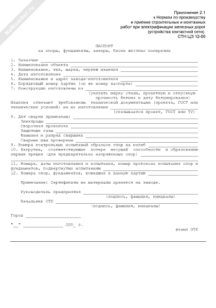 Паспорт на опоры, фундаменты, анкеры, блоки жестких поперечин, прибывшие с заводов-изготовителей (рекомендуемый образец заполнения)