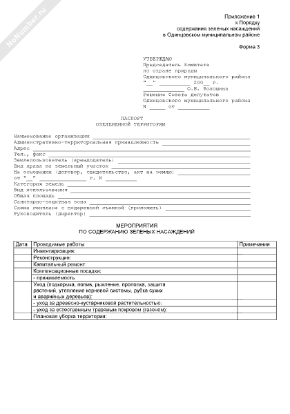 Паспорт озелененной территории в Одинцовском муниципальном районе Московской области (форма № 3)