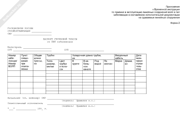 Паспорт групповой трассы из ПВП кабелеводов (форма № 2)