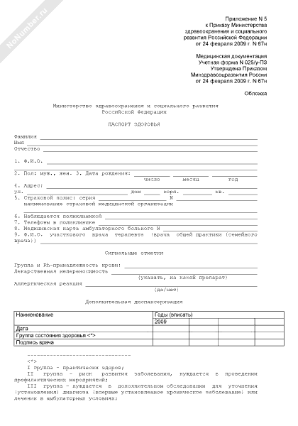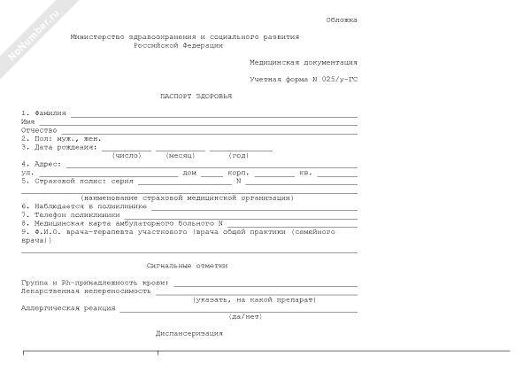 Паспорт здоровья. Учетная форма № 025/у-ПЗ