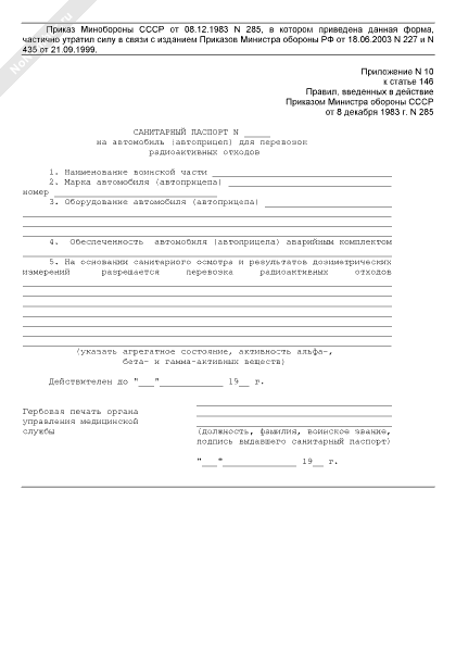 - Источник– Приказ Министра обороны СССР от 08.12.1983 № 285