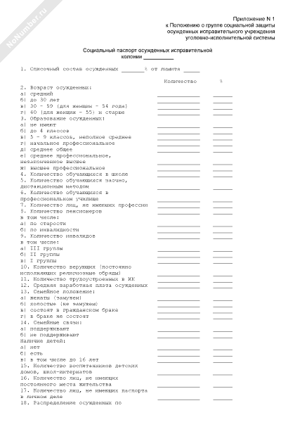 Социальный паспорт осужденных исправительной колонии (рекомендуемый образец заполнения)