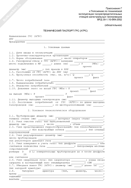 Технический паспорт газораспределительной станции магистрального газопровода (рекомендуемый образец заполнения)