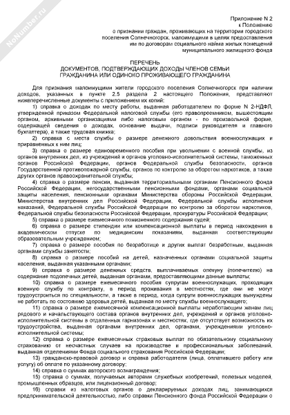 - 186Перечень документов, подтверждающих доходы членов семьи гражданина или одиноко проживающего гражданина на территории городского поселения Солнечногорск Московской области