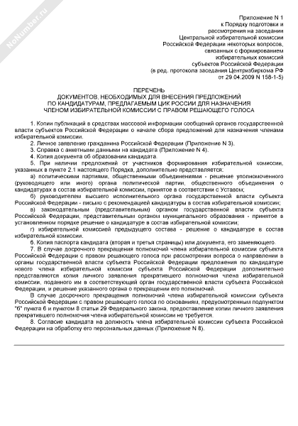 - 188Перечень документов, необходимых для внесения предложений по кандидатурам, предлагаемым ЦИК России для назначения членом избирательной комиссии с правом решающего голоса