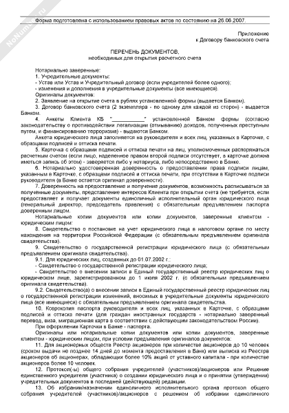 - 190Перечень документов, необходимых для открытия расчетного счета (приложение к договору банковского счета)