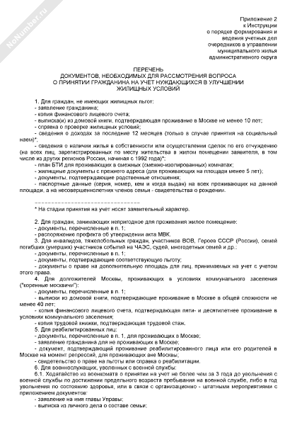 - 191Перечень документов, необходимых для рассмотрения вопроса о принятии гражданина на учет нуждающихся в улучшении жилищных условий