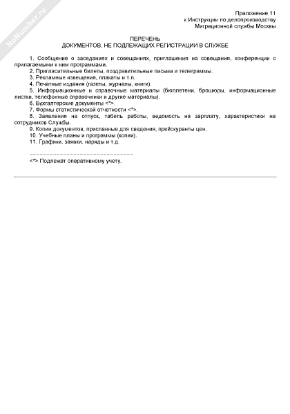 - 200Перечень документов, не подлежащих регистрации в Миграционной службе г. Москвы