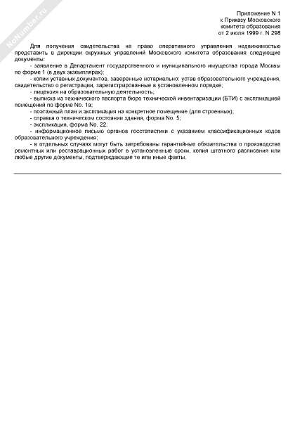 - 193Перечень документов на оформление права оперативного управления и получения свидетельства на пользование зданиями, сооружениями системы образования в Департаменте государственного и муниципального имущества г. Москвы