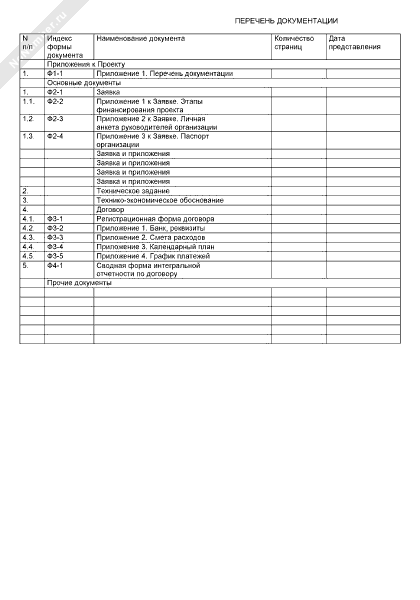 - 258Перечень документации к проекту по финансовой и имущественной поддержке малого предпринимательства. Форма № Ф1-1