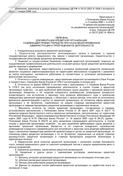 - 260Перечень документации кредитной организации, подлежащей приему-передаче при назначении временной администрации и прекращении ее деятельности