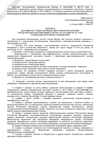 - 244Перечень документов, представляемых для признания жителей города Москвы малоимущими в целях постановки их на учет нуждающихся в жилых помещениях