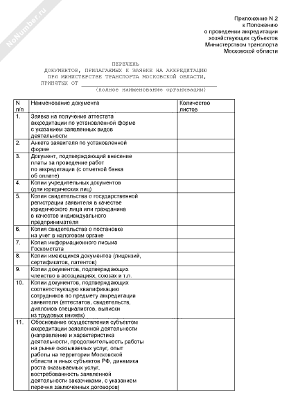 - 247Перечень документов, прилагаемых к заявке на аккредитацию при Министерстве транспорта Московской области, принятых от организации