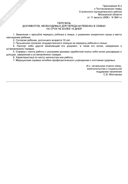 - 255Перечень документов, необходимых для передачи ребенка в семью на срок не более 10 дней на территории Ступинского муниципального района
