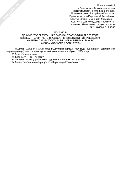 - 241Перечень документов граждан Киргизской Республики для въезда, выезда, транзитного проезда, передвижения и пребывания на территории государств — членов Евразийского экономического сообщества