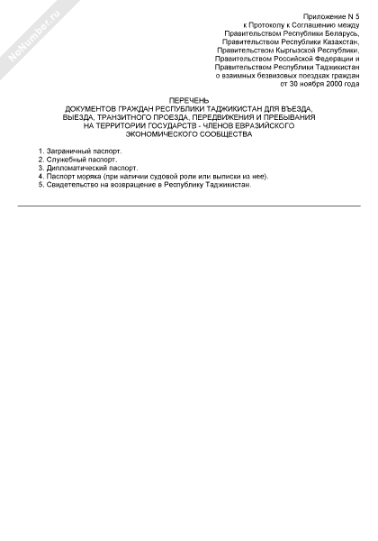 - 243Перечень документов граждан Республики Таджикистан для въезда, выезда, транзитного проезда, передвижения и пребывания на территории государств — членов Евразийского экономического сообщества