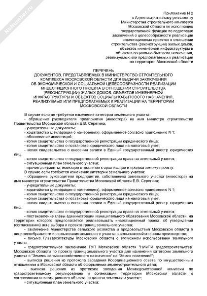 - 292Перечень документов, представляемых в Министерство строительного комплекса Московской области для выдачи заключения об экономической и социальной целесообразности реализации инвестиционного проекта в отношении строительства (реконструкции) жилых домов, объектов инженерной инфраструктуры и объектов социально-бытового назначения, реализуемых или предполагаемых к реализации на территории Московской области
