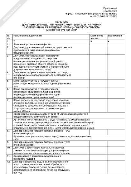 - 286Перечень документов, представляемых заявителем для получения разрешения на размещение нестационарного объекта мелкорозничной сети (приложение к заявлению для получения разрешения на размещение нестационарного объекта мелкорозничной сети в городе Москве)