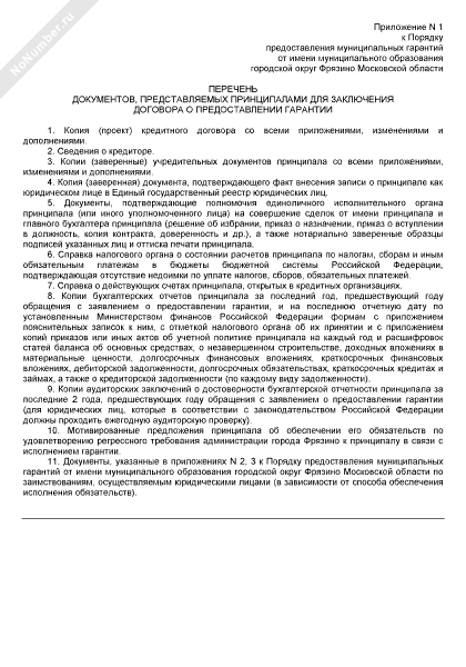- 288Перечень документов, представляемых принципалами для заключения договора о предоставлении гарантии от имени муниципального образования «Городской округ Фрязино» Московской области