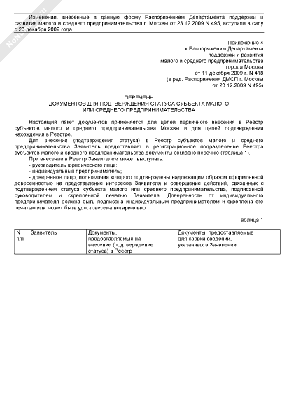 - 281Перечень документов для подтверждения статуса субъекта малого или среднего предпринимательства
