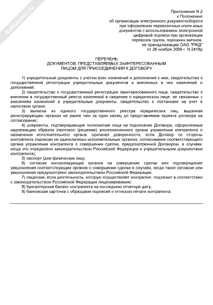 - 322Перечень документов, представляемых заинтересованным лицом для присоединения к договору в ОАО «РЖД»