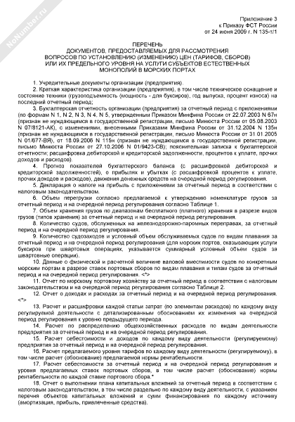 - 325Перечень документов, предоставляемых для рассмотрения вопросов по установлению (изменению) цен (тарифов, сборов) или их предельного уровня на услуги субъектов естественных монополий в морских портах