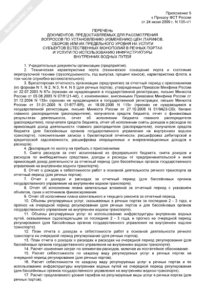 - 327Перечень документов, предоставляемых для рассмотрения вопросов по установлению (изменению) цен (тарифов, сборов) или их предельного уровня на услуги субъектов естественных монополий в речных портах и услуги по использованию инфраструктуры внутренних водных путей