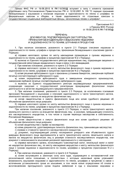- 339Перечень документов, при наличии которых принимается решение о признании безнадежной к взысканию недоимки, задолженности по пеням и штрафам, числящимся по состоянию на 1 января 2010 года за организациями, которые отвечают признакам недействующего юридического лица