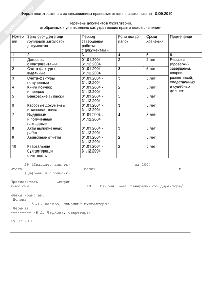 - 341Перечень документов бухгалтерии, отобранных к уничтожению как утративших практическое значение